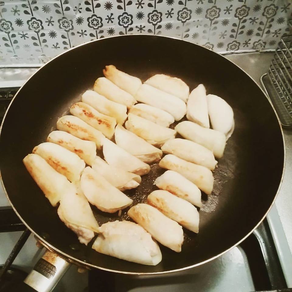 味付けされているつみれをその大根ではさんで焼くだけです。