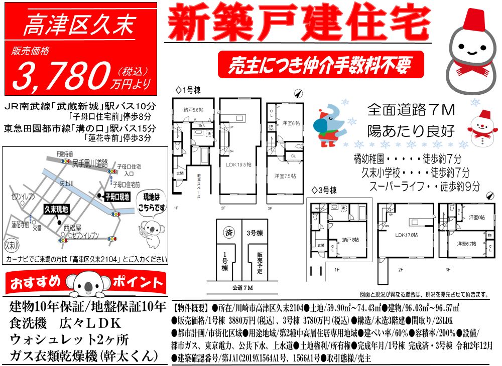 ☆新築分譲住宅 高津区久末 全4棟(今回販売2棟)☆